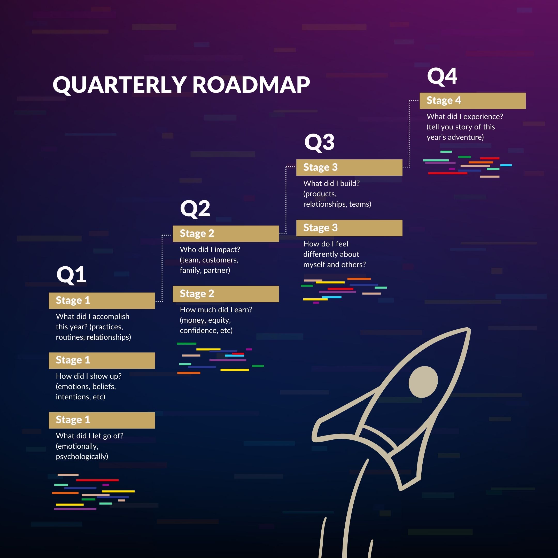 Beautifully designed, downloadable workbook packed with tools and exercises to: map quarterly priorities, track your wins, and create triggers to reward yourself for progress so you stay laser-focused.